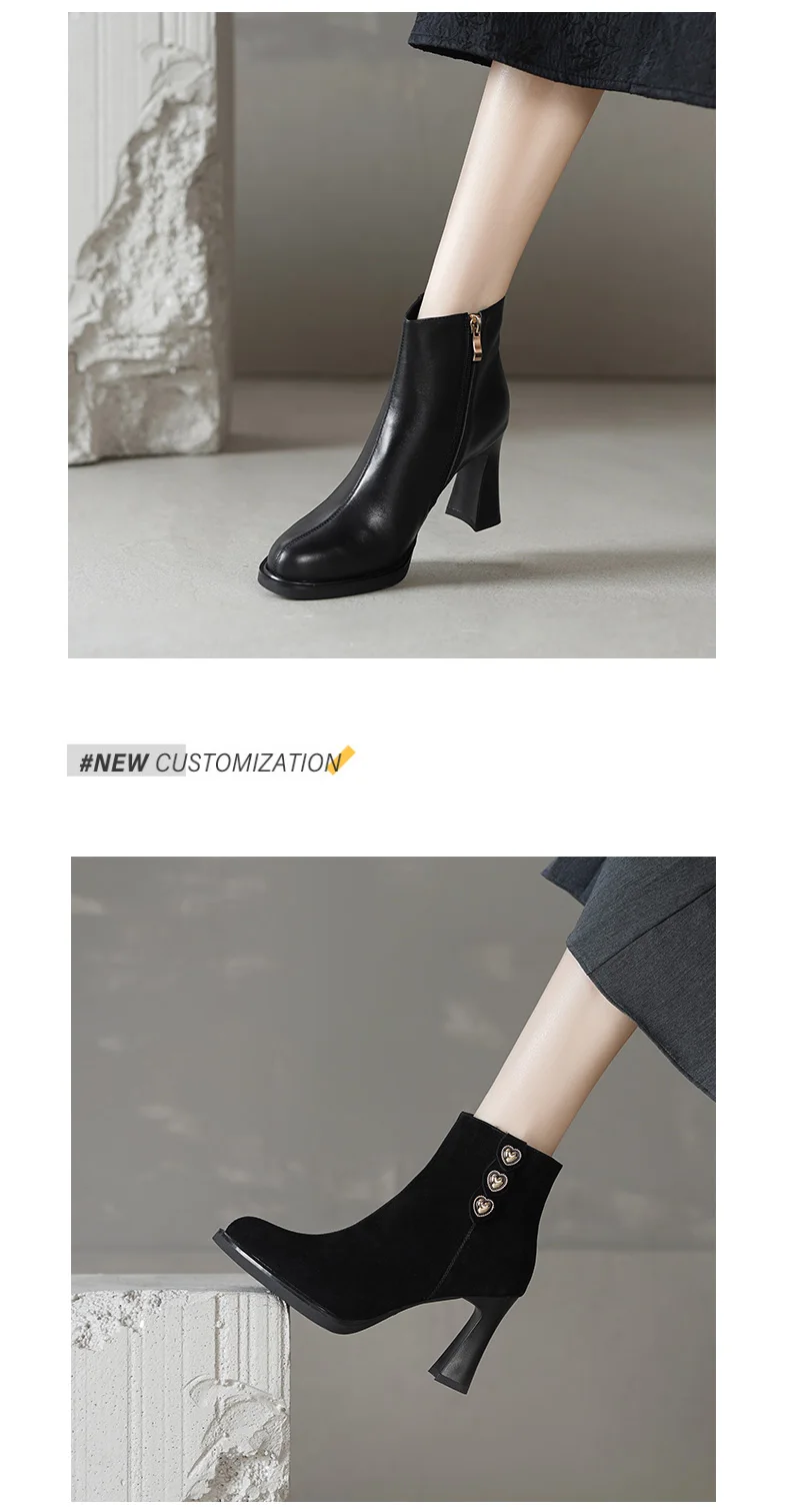 Be the first to review “2025 New Platform Women Ankle Boots Genuine Leather Fashionable Round-toe Modern Boots 9cm High Heels Shoes”