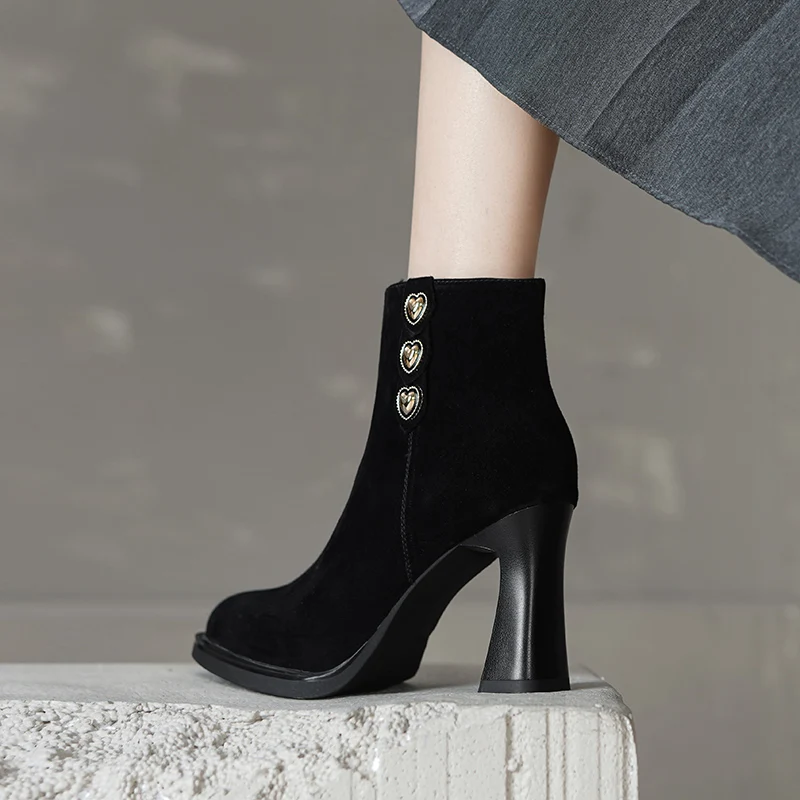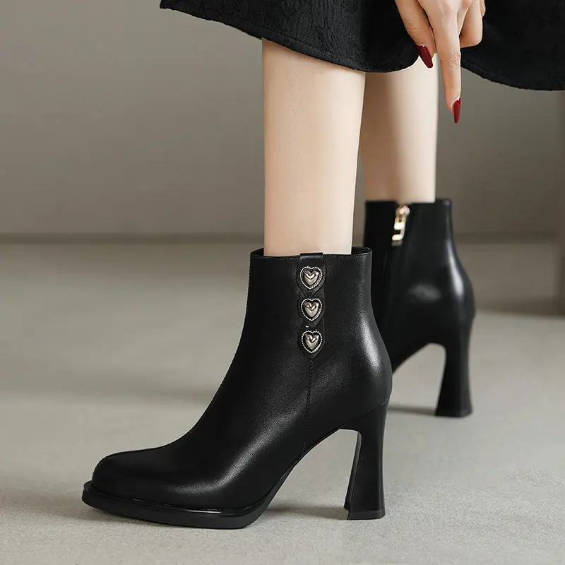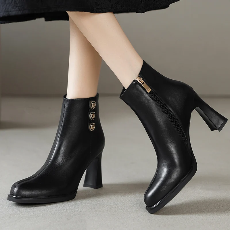2025 New Platform Women Ankle Boots Genuine Leather Fashionable Round-toe Modern Boots 9cm High Heels Shoes
