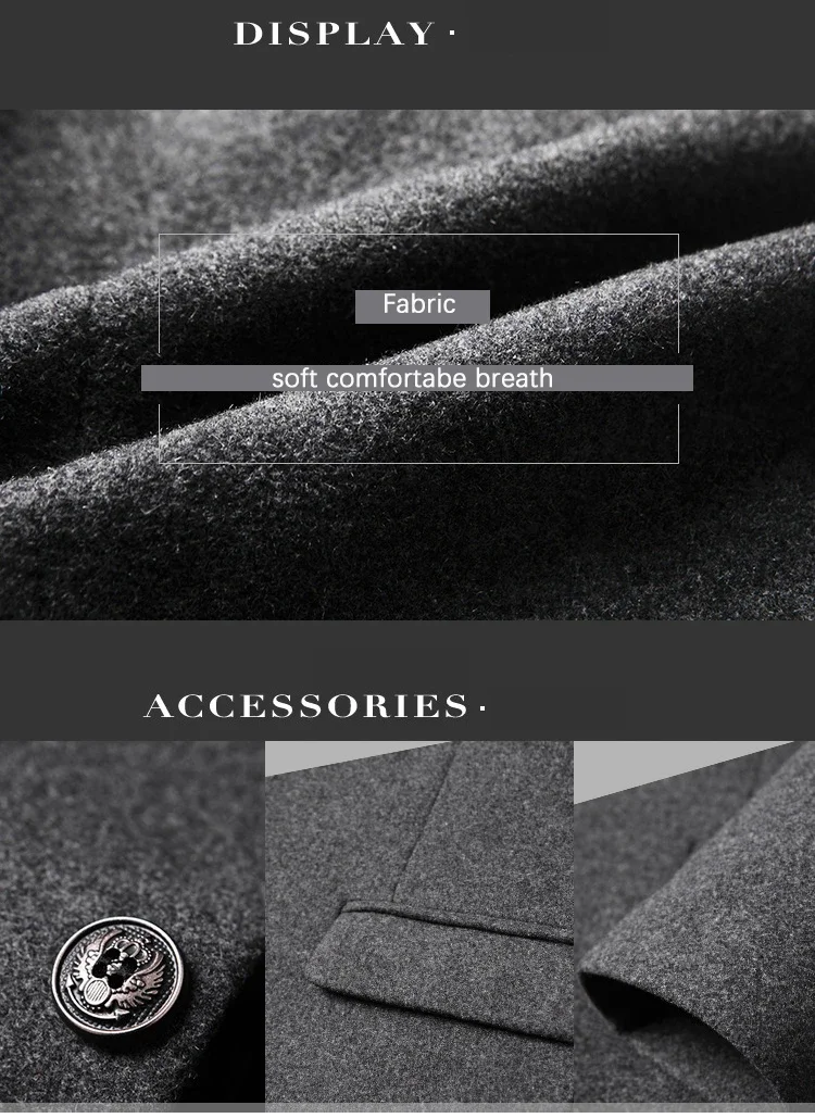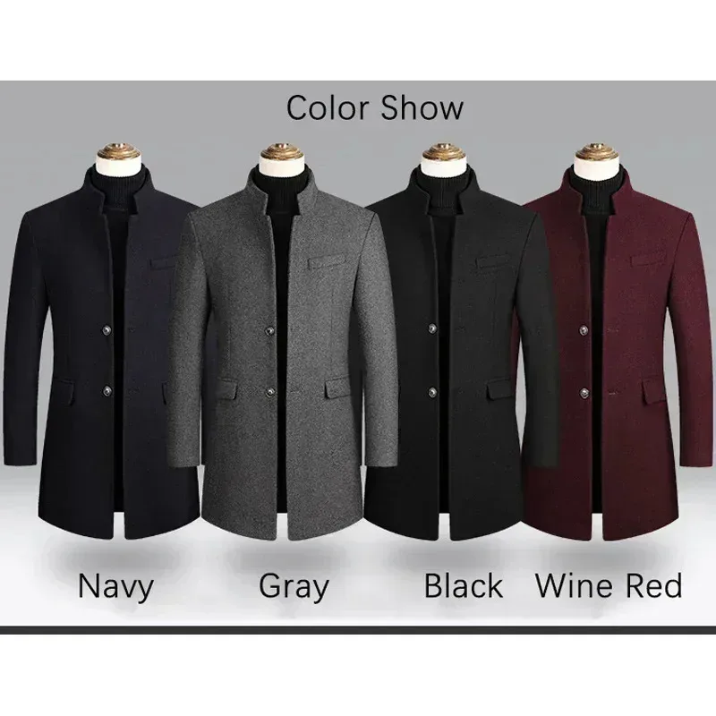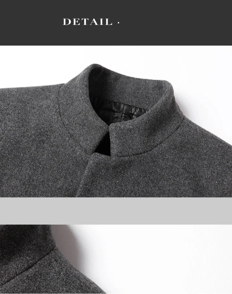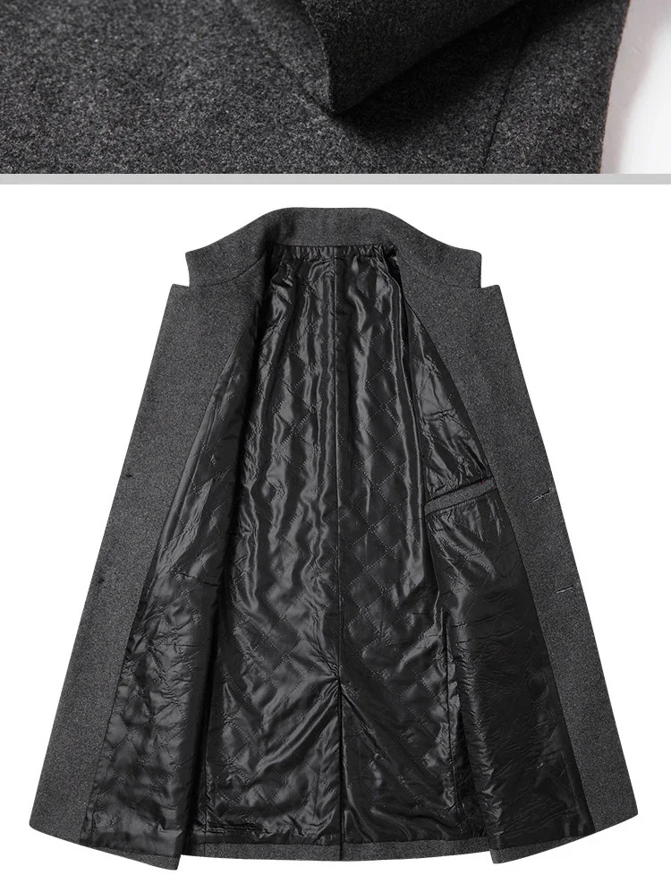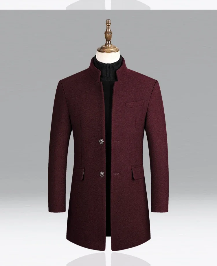 Material: 25% Wool, 63. 3% Polyester, 11. 4% OtherApplicable Scene: BusinessClosure Type: Single BreastedSleeve Style: RegularFabric Type: WoolenCollar: Mandarin Collar**Elegant Craftsmanship for Professional Settings**The BROWON Brand Business Casual Trench Coat is a testament to sophistication and style, designed to elevate your professional wardrobe. Crafted from a blend of 25% wool, 63.3% polyester, and 11.4% other fibers, this coat combines the durability and warmth of wool with the ease of care and versatility of polyester. The woolen fabric type ensures a classic feel that is perfect for business environments. **Tailored for Comfort and Style**The coat's design is both functional and fashionable. The single-breasted closure provides a secure fit, while the regular sleeve style offers a comfortable range of motion. The mandarin collar adds a touch of elegance, making this coat an ideal choice for both autumn and winter wear. The long clothing length offers ample coverage, ensuring you stay warm and stylish in cooler weather. **Adaptable and Versatile for the Modern Man**This BROWON wool coat is not just a garment; it's a statement piece that transcends seasons. It's a solid color coat that pairs effortlessly with various outfits, from business attire to casual wear. The absence of any decoration allows the coat to serve as a blank canvas, ready to be adorned with accessories or worn simply for its understated elegance. Whether you're attending a business meeting or enjoying a leisurely outing, this coat is designed to suit a variety of occasions and personal styles.