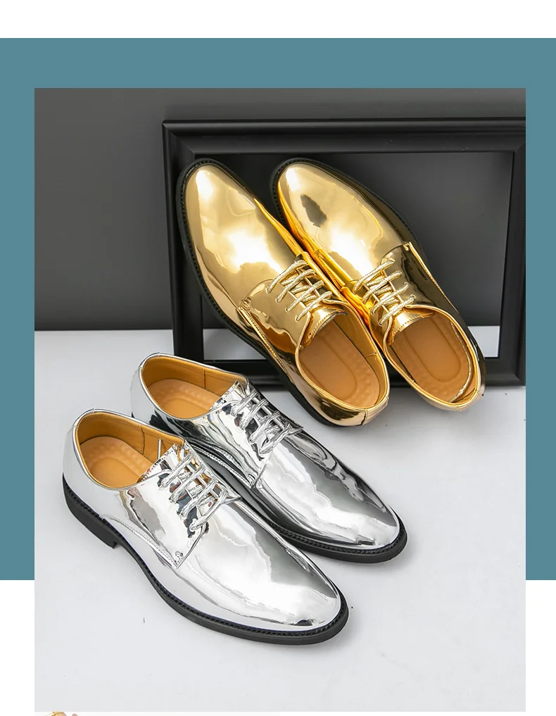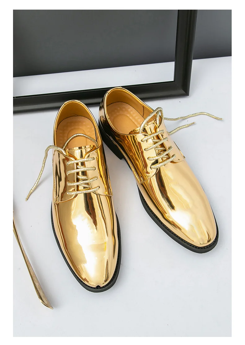 Fashion Golden Leather Shoes For Men Large Size 49 50 Shiny Party Shoes Male Pointed Bussiness Man Formal Shoes chaussures homme