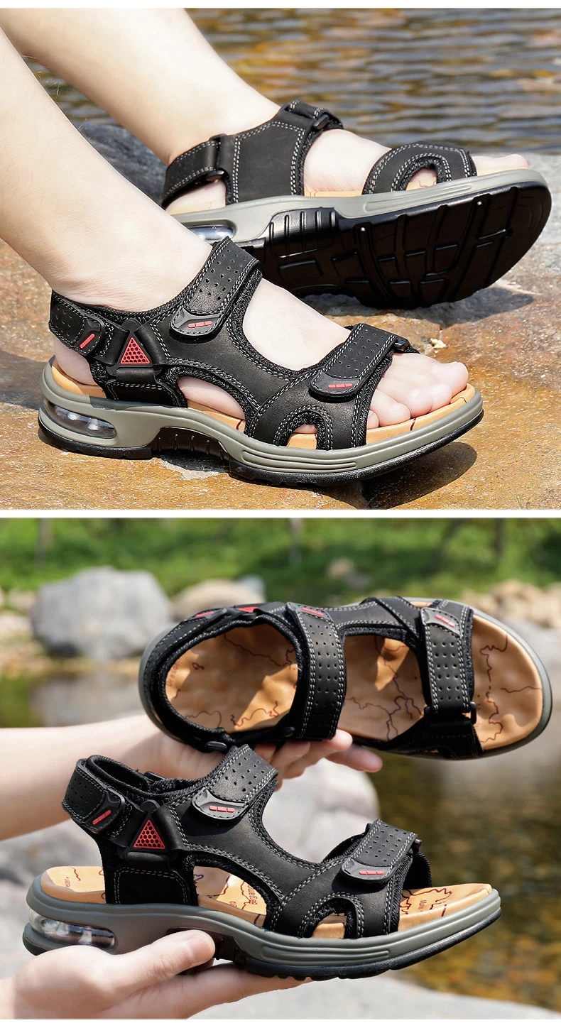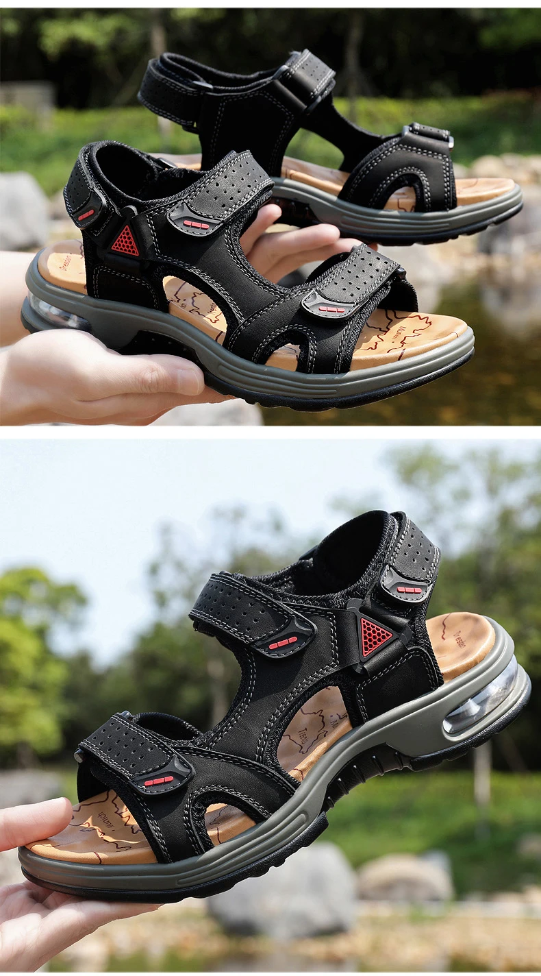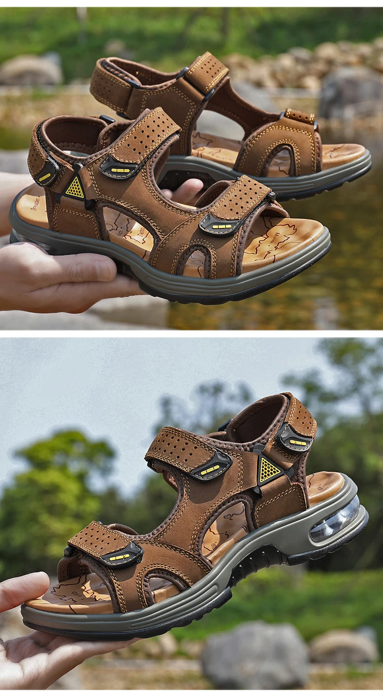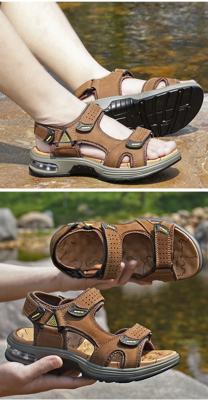 Fashion Men’s Sandals Summer Soft Beach Flip Flop Comfortable Genuine Leather Sandals Outdoor Men Roman Sandals Size 46