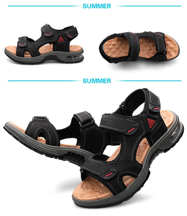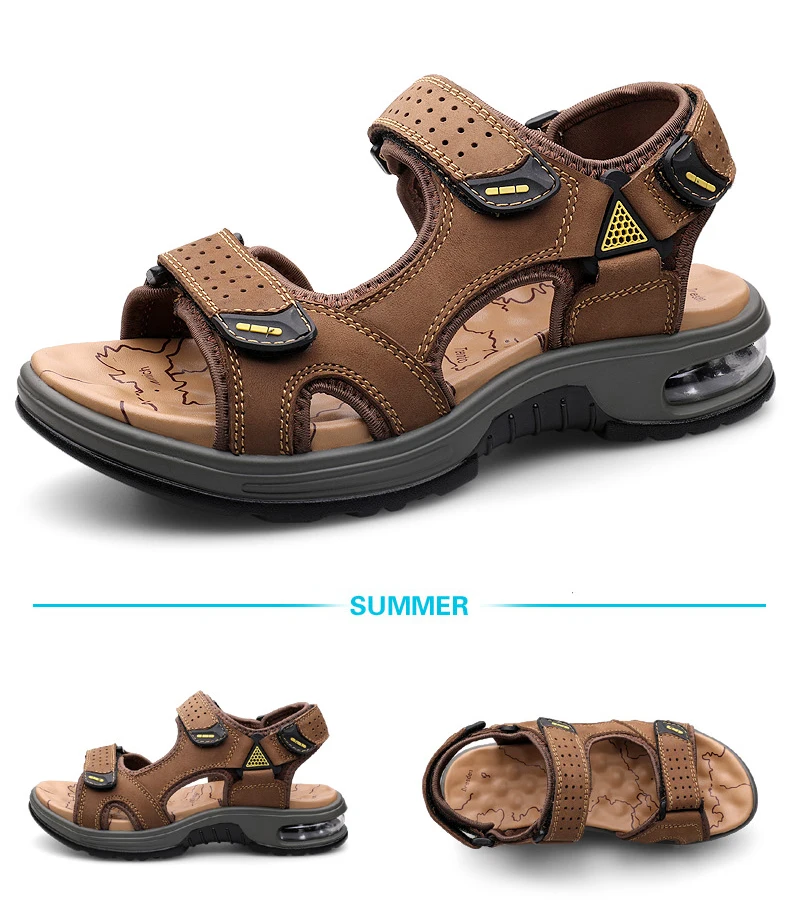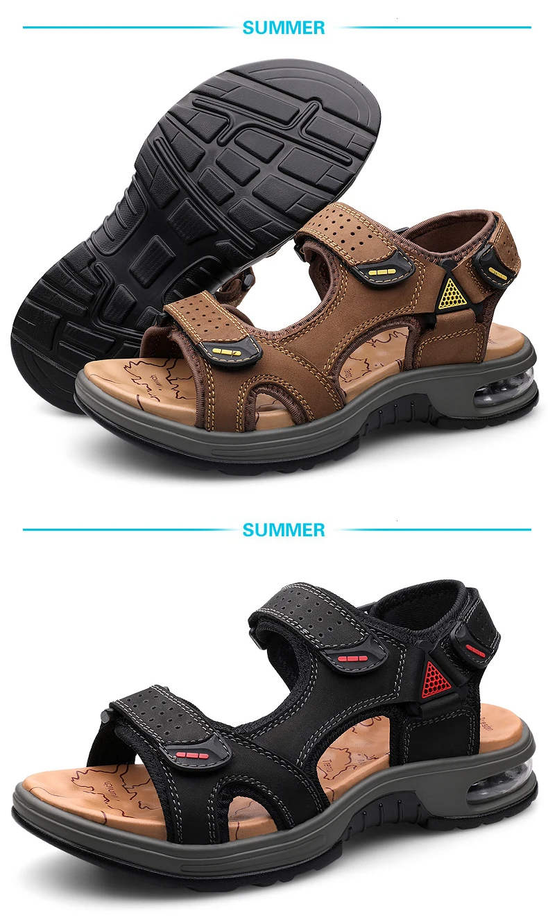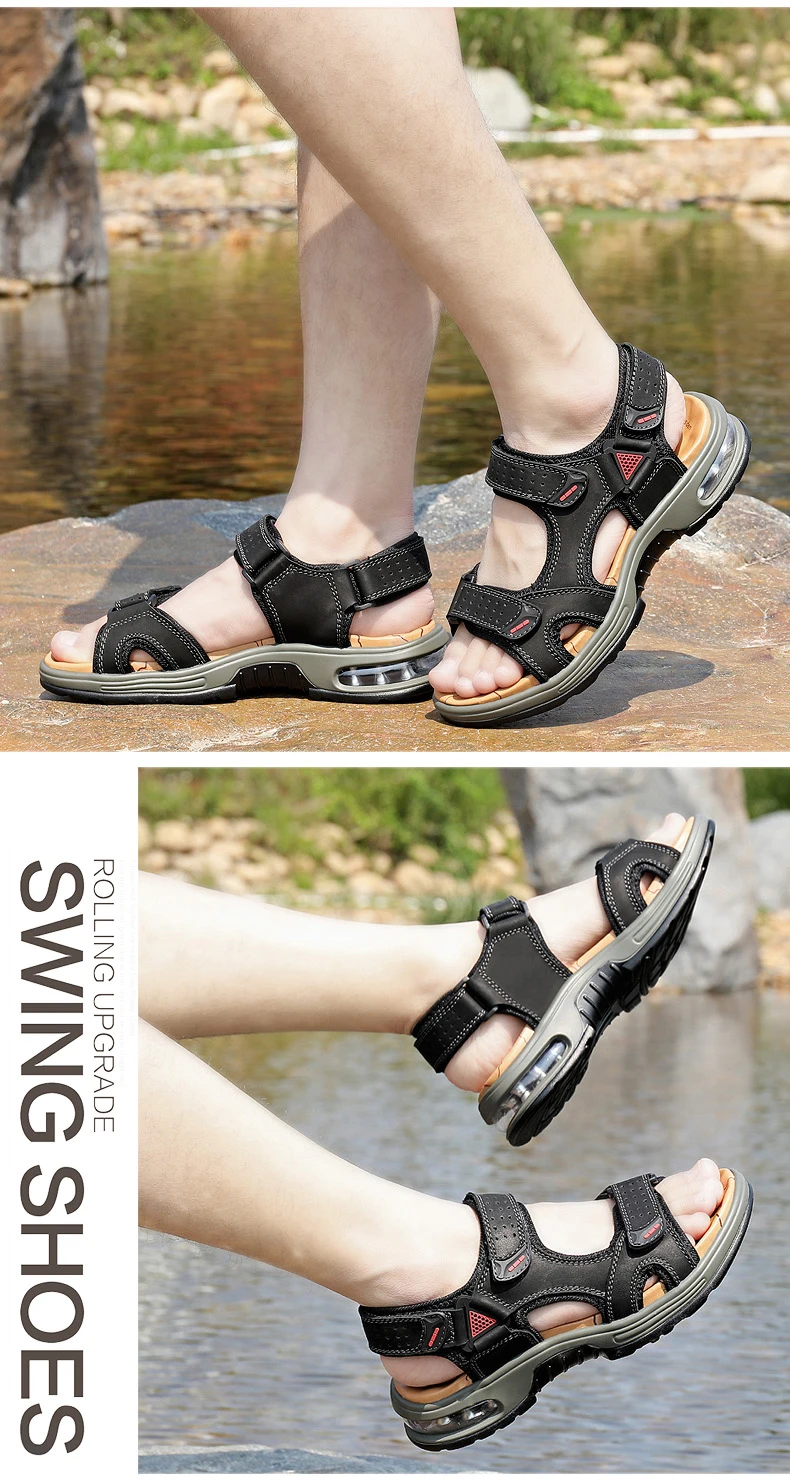 Fashion Men’s Sandals Summer Soft Beach Flip Flop Comfortable Genuine Leather Sandals Outdoor Men Roman Sandals Size 46