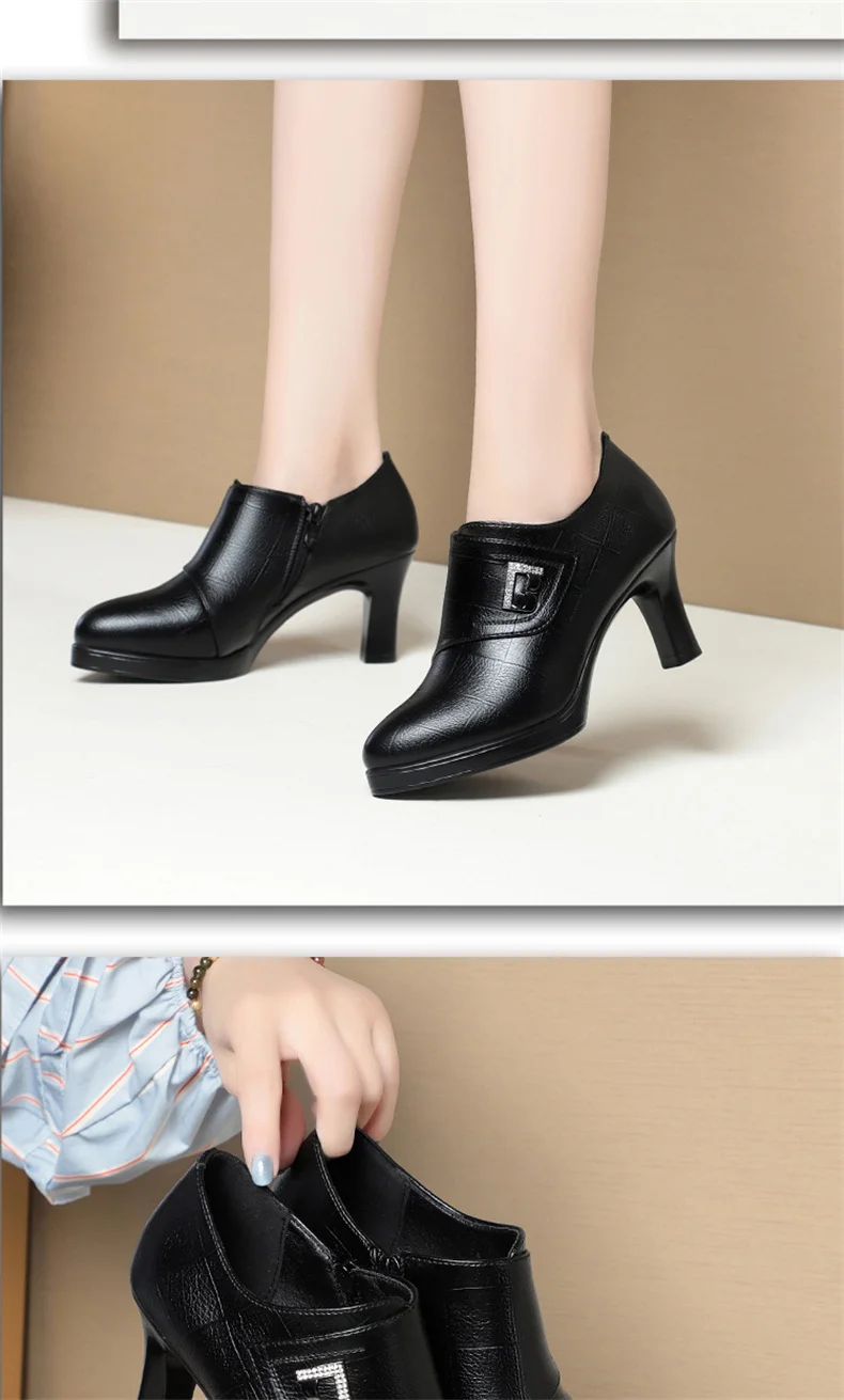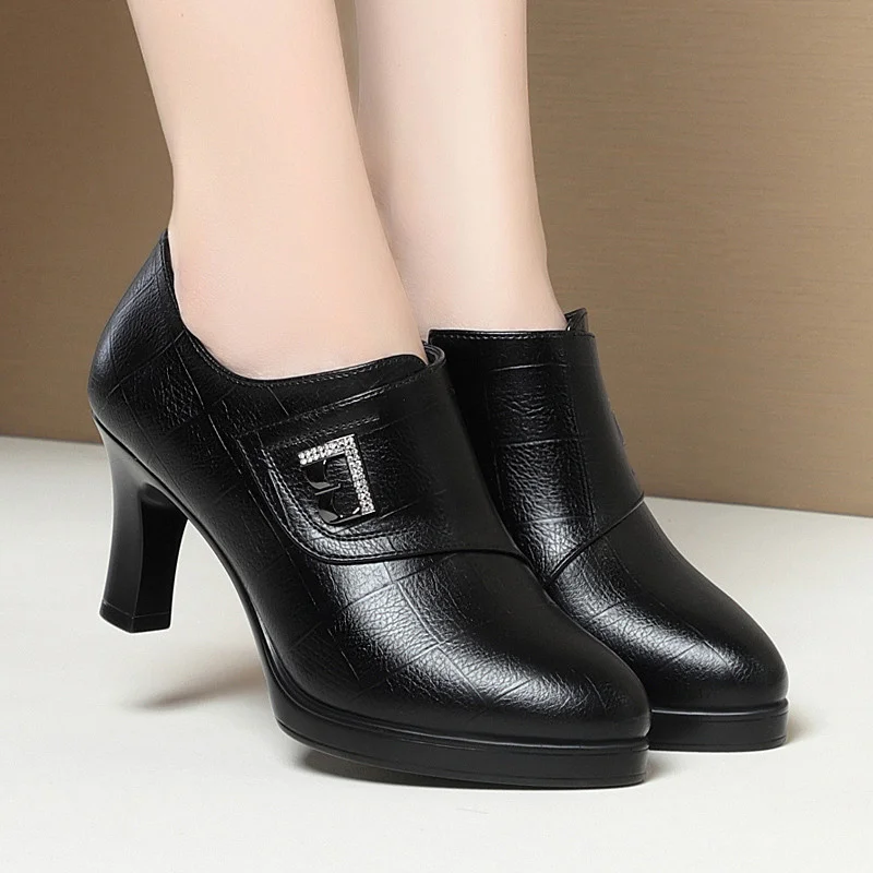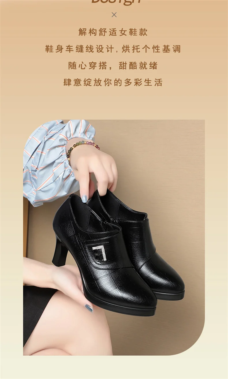 Be the first to review “High Heels for Women 2024 Spring New Deep Mouth Soft Bottom Waterproof Business Formal Wear Office High Heel Leather Shoes”