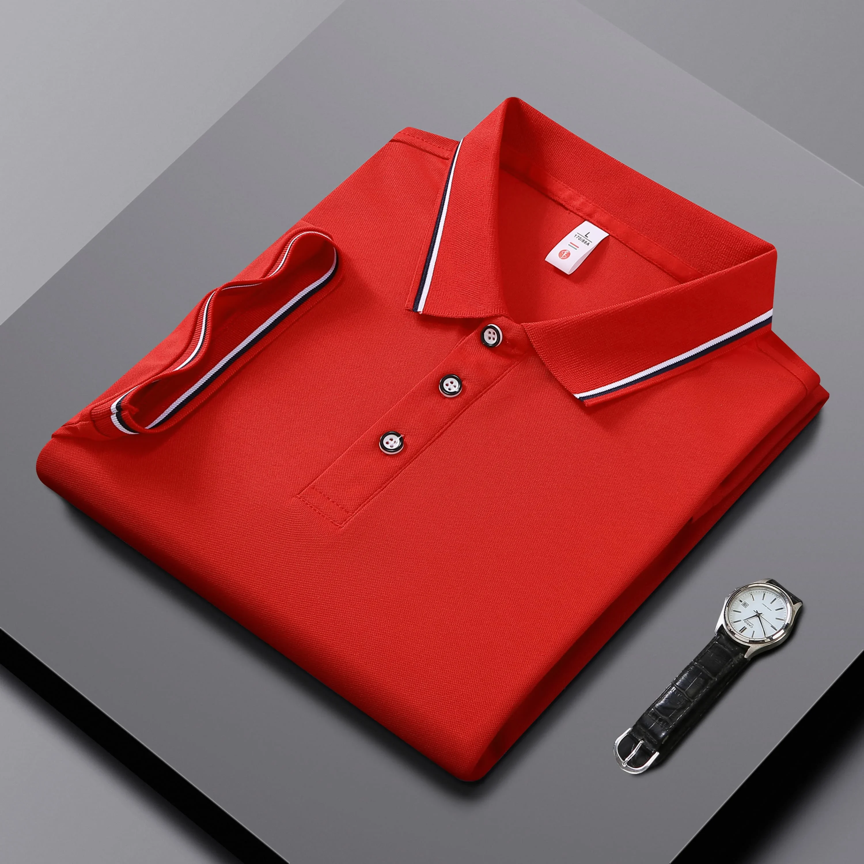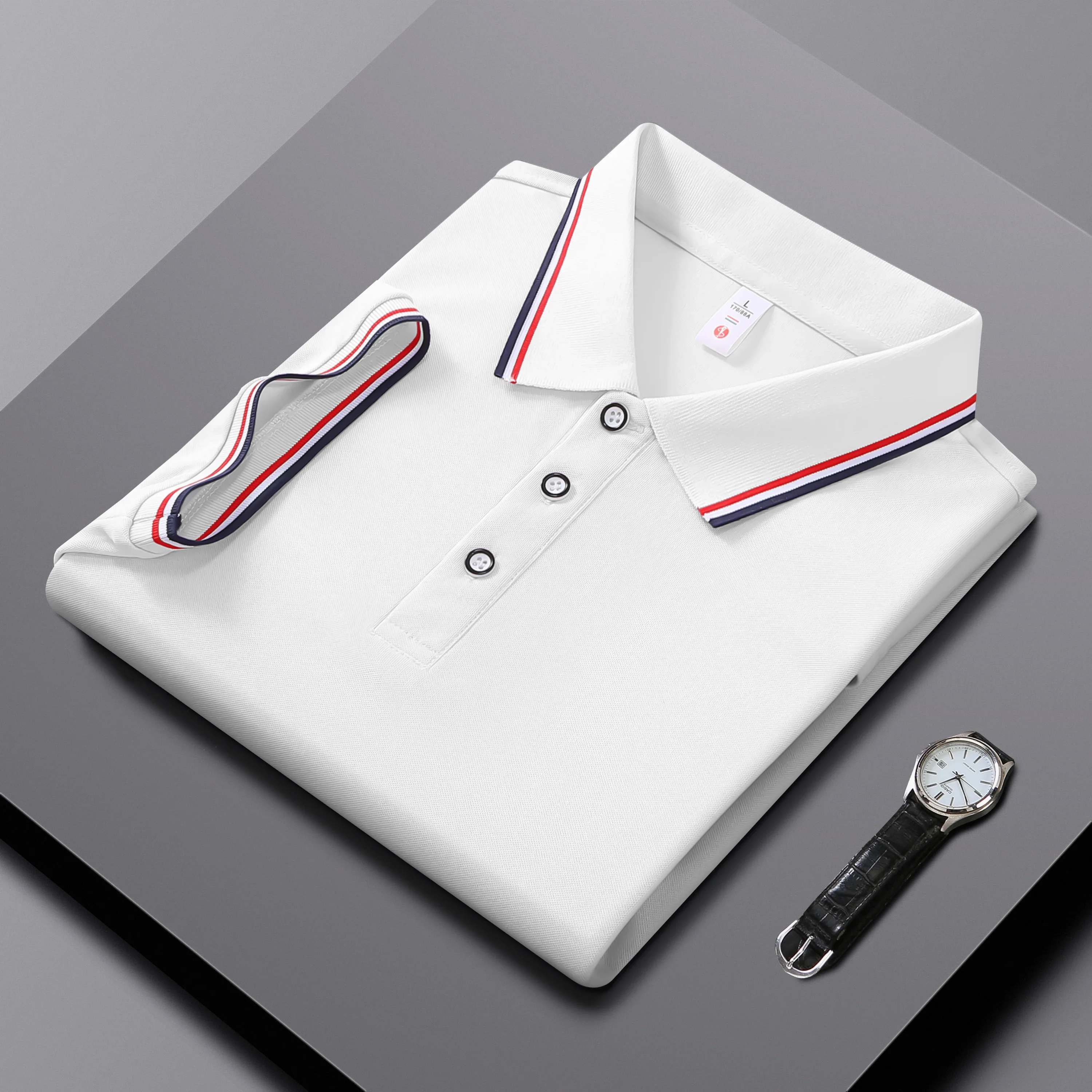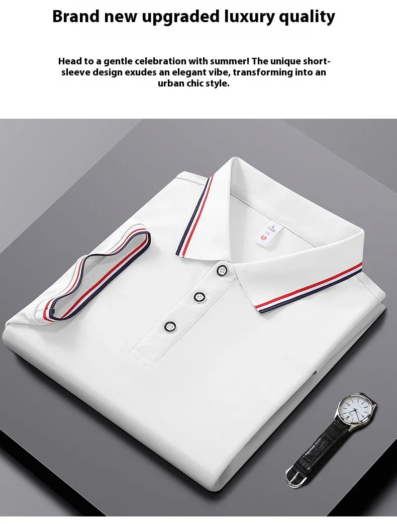 Men Clothes Spring Summer Casual Fashion Short Sleeve Stand Collar Polo Shirt Logo Print Men Clothes Slim Fit Polo Shirt