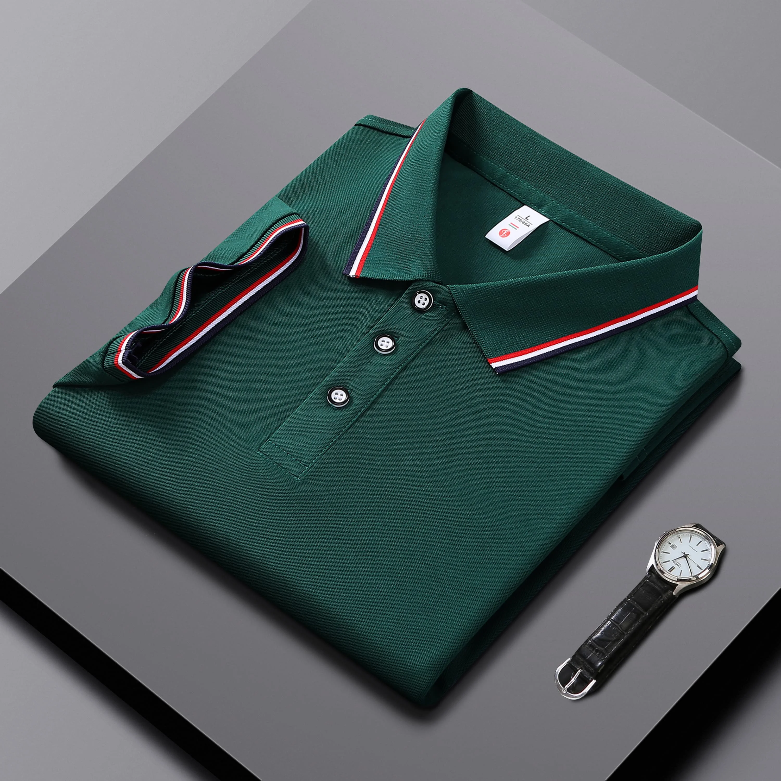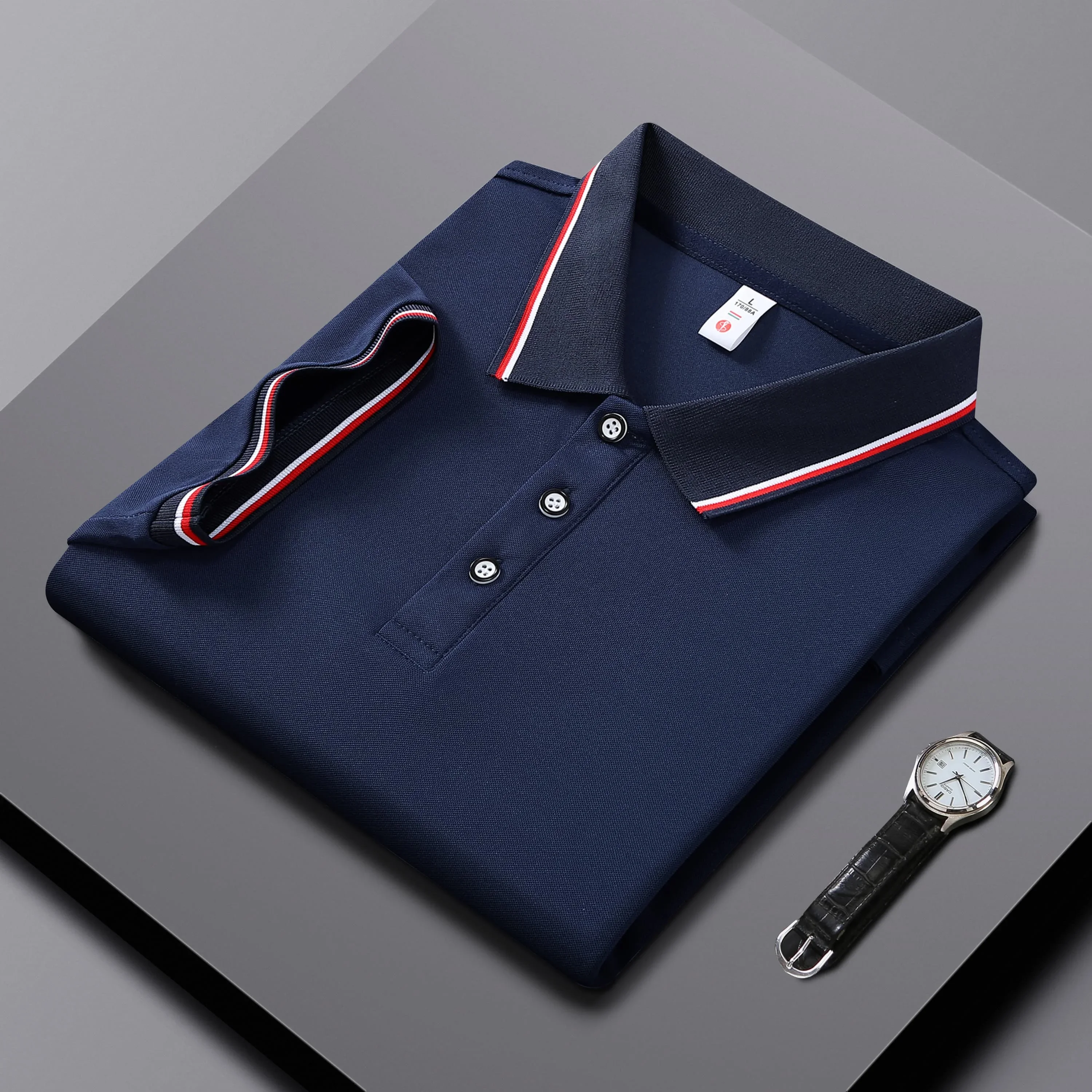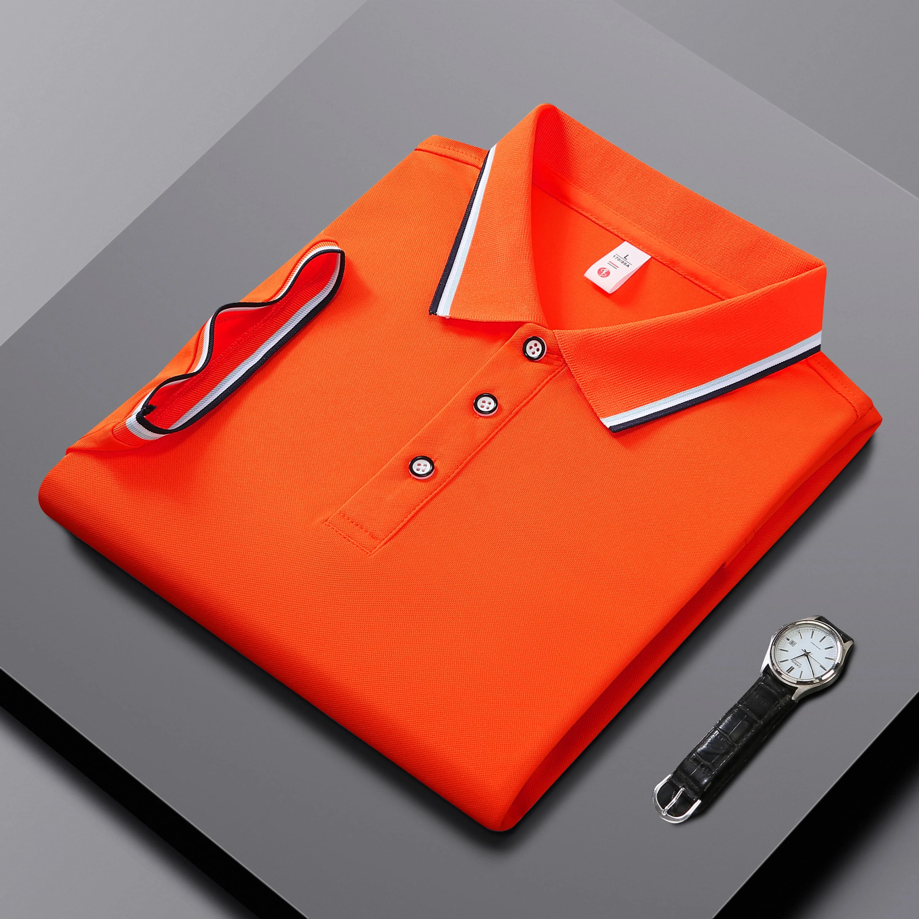 Men Clothes Spring Summer Casual Fashion Short Sleeve Stand Collar Polo Shirt Logo Print Men Clothes Slim Fit Polo Shirt